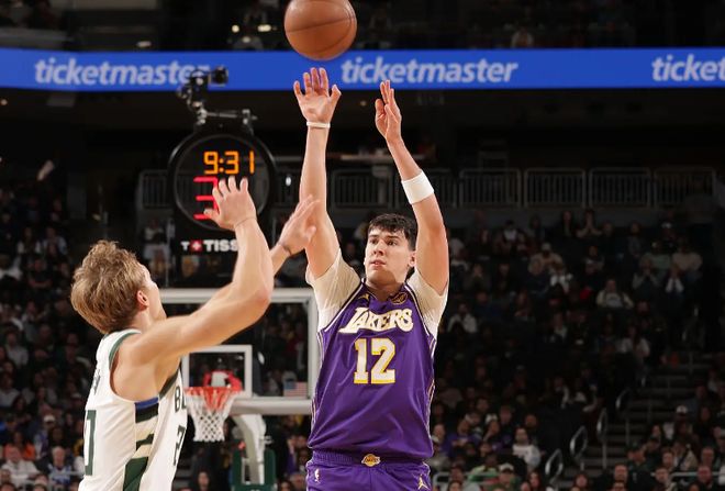 本场比赛中,虽然湖人比较顺利地取得了比赛的胜利,但是球队的先发侧翼球员杰克-拉拉维亚(Jake LaRavia)的表现并不理想,并没有发挥出自己的特点。拉拉维亚全场出场36分32秒,投篮10中1,三分线外4中0,罚球2中2,仅得到4分6篮板1助攻2抢断的数据,还有1次失误和4次犯规,正负值倒是达到了全场最高的+26。拉拉维亚在攻防两端的表现都很不理想,他的进攻效率非常糟糕,他的外线投篮毫无手感,他得到了不少出手机会,然而他在进攻端满满的都是副作用,他的得分能力以及传球和策应能力都没有发挥出来。拉拉维亚在防守端的表现确实是要比在进攻端好出不少,然而从实际情况来看,他在防守端对于比赛的影响力也没有那么突出,他在一些时候也没有办法集中自己的防守注意力。至于+26的正负值,那也和他长时间和状态火热的卢卡-东契奇(Luka Doncic)一起出场密切相关。